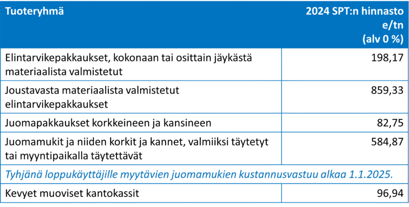 · Suomen Pakkaustuottajat Oy:n asiakas, hinnat löytyvät täältä ja alta